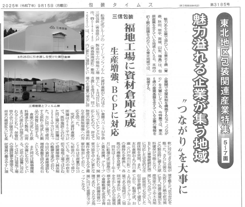 【お知らせ】弊社の記事が包装タイムスに掲載されました。